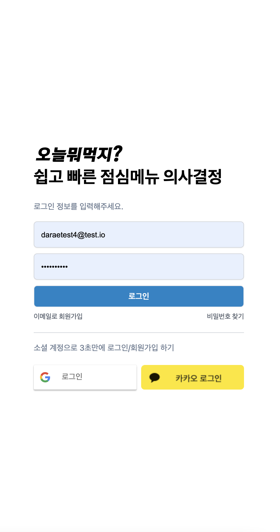 안녕하세요. 1인 개발 프로젝트인 오늘 뭐 먹지? 서비스를 소개합니다.